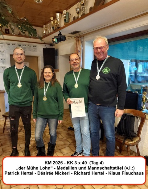 Wertungen KK 3 x 40, KK Liegendkampf, KK Gewehr Auflage, KK – Unterhebelgewehr